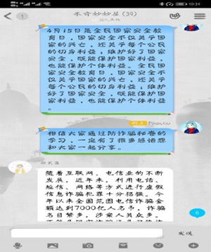 2019級A部輔導員李丹老師提前謀劃,以班級為單位,由各班班委帶領本班同學一起在線上學習。在學習期間,同學們認真做好防騙試題,積極表達了對于此次學習的感悟,并通過QQ群與本班同學分享了防詐騙的知識和技巧。同學們拓寬了防詐騙相關知識,同時也提高了個人警惕性。