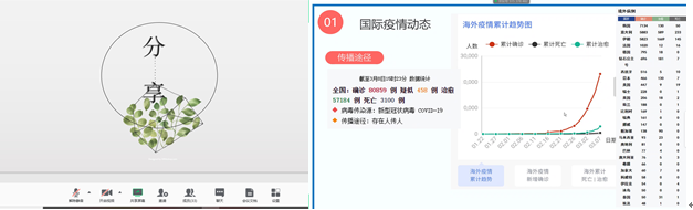 提出中外面對疫情防控處理方式的差別并進行對比。呼吁大家相信國家相信黨,不聚會,不外出,不傳謠,不信謠為迎接新黎明的到來做好準備。幻燈片放映結束,以幻燈片內容為基礎,向同學提出問題。大部分同學積極參與問題討論。答疑完畢,全體同學觀看為武漢加油的視頻合集。