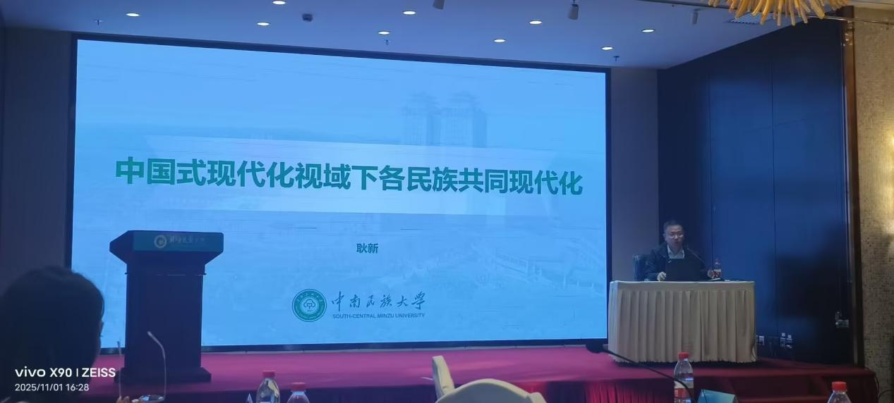 我院耿新教授受邀出席會議,并以《中國式現代化視域下各民族共同現代化》為題作研討交流報告。報告立足中國式現代化宏觀背景,精準切入各民族共同現代化的實現路徑、現實意義及實踐挑戰等內容,結合扎實的學術研究與鮮活的實際案例進行深度剖析,提出了針對性與創新性的見解思考,并與參會人員熱烈討論和交流。