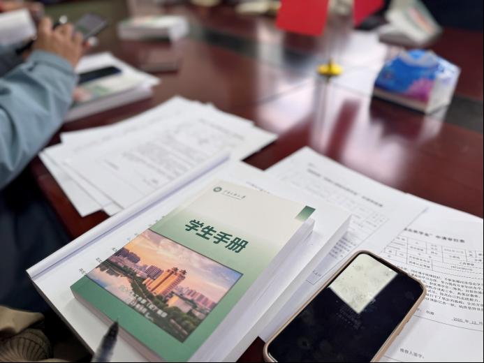 會上,李明亮副書記帶領(lǐng)全體人員研讀2025年新版《學生手冊》,圍繞學籍管理、獎懲制度、資助政策、心理健康教育及校園安全規(guī)定等重點修訂內(nèi)容展開專題輔導。李明亮強調(diào),全體學工人員要切實做到“三個到位”:一是思想認識到位,深刻領(lǐng)會手冊修訂的重要意義,將依規(guī)治校理念貫穿學生工作始終;二是學習領(lǐng)會到位,精準把握條款細則,杜絕“一知半解、似是而非”;三是執(zhí)行落實到位,在評獎評優(yōu)、違紀處理、日常管理等環(huán)節(jié)嚴格對標、規(guī)范操作,確保制度剛性執(zhí)行。