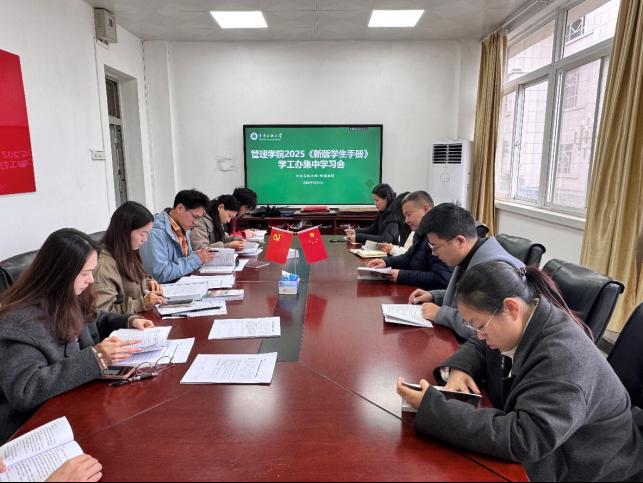 2025年12月5日下午,中南民族大學管理學院在5-222會議室組織召開2025年新版《學生手冊》學工辦集中學習會。學院黨委副書記李明亮出席會議并領(lǐng)學,全體本科生專職輔導員及兼職輔導員參加。會議旨在深入學習領(lǐng)會2025年新版《學生手冊》各項規(guī)章制度,強化學工隊伍對學生管理制度的理解與執(zhí)行能力,提升學生管理工作規(guī)范化水平。