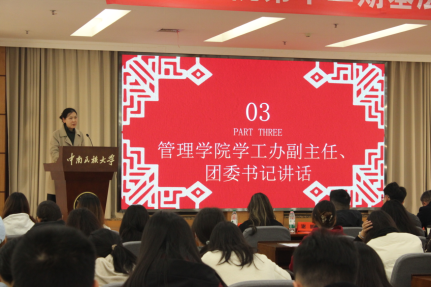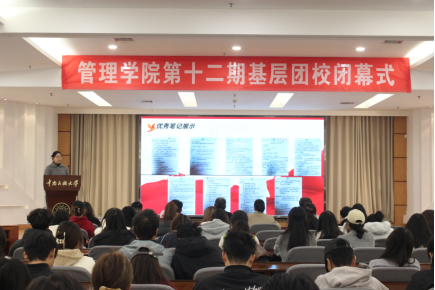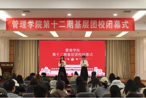 12月9日中午,管理學(xué)院第十二期基層團(tuán)校閉幕式在潤良報(bào)告廳順利召開。管理學(xué)院黨委副書記李明亮,學(xué)院學(xué)工辦副主任、團(tuán)委書記姚亞南,學(xué)院團(tuán)委副書記、第十二期基層團(tuán)校校長何港,2025級A部輔導(dǎo)員田堯,2025級B部輔導(dǎo)員謝鵬,學(xué)院團(tuán)委學(xué)生會主席團(tuán)成員以及第十二期基層團(tuán)校全體學(xué)員參加了本次活動。