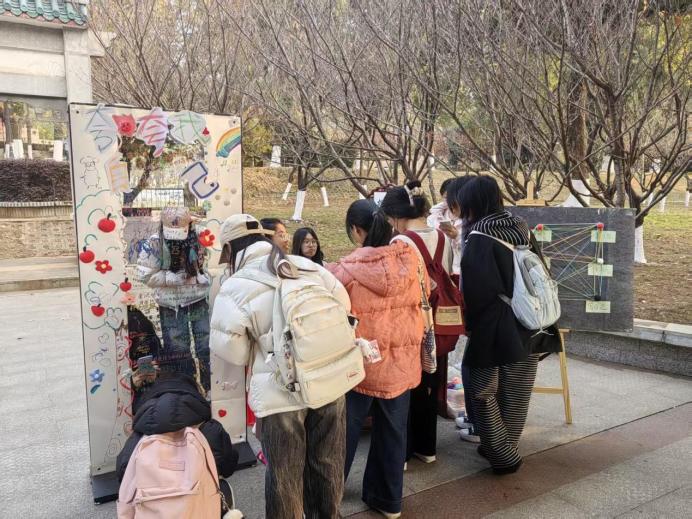 活動現場的“夸夸我”“情緒盲盒”“玩個毛線”等游戲人氣高漲,參與者寫下煩惱投入“情緒盲盒”,換取“鼓勵盲盒”的抽取機會,在輕松氛圍中學會正視情緒和煩惱;“玩個毛線” 用毛線串起被忽略的日常小事,引導大家關注生活中的小確幸;”夸夸我”的墻上留下了同學們美好祝愿。路過的師生紛紛駐足觀看,不時還拿出手機拍照記錄,留下了印象深刻的美好回憶。