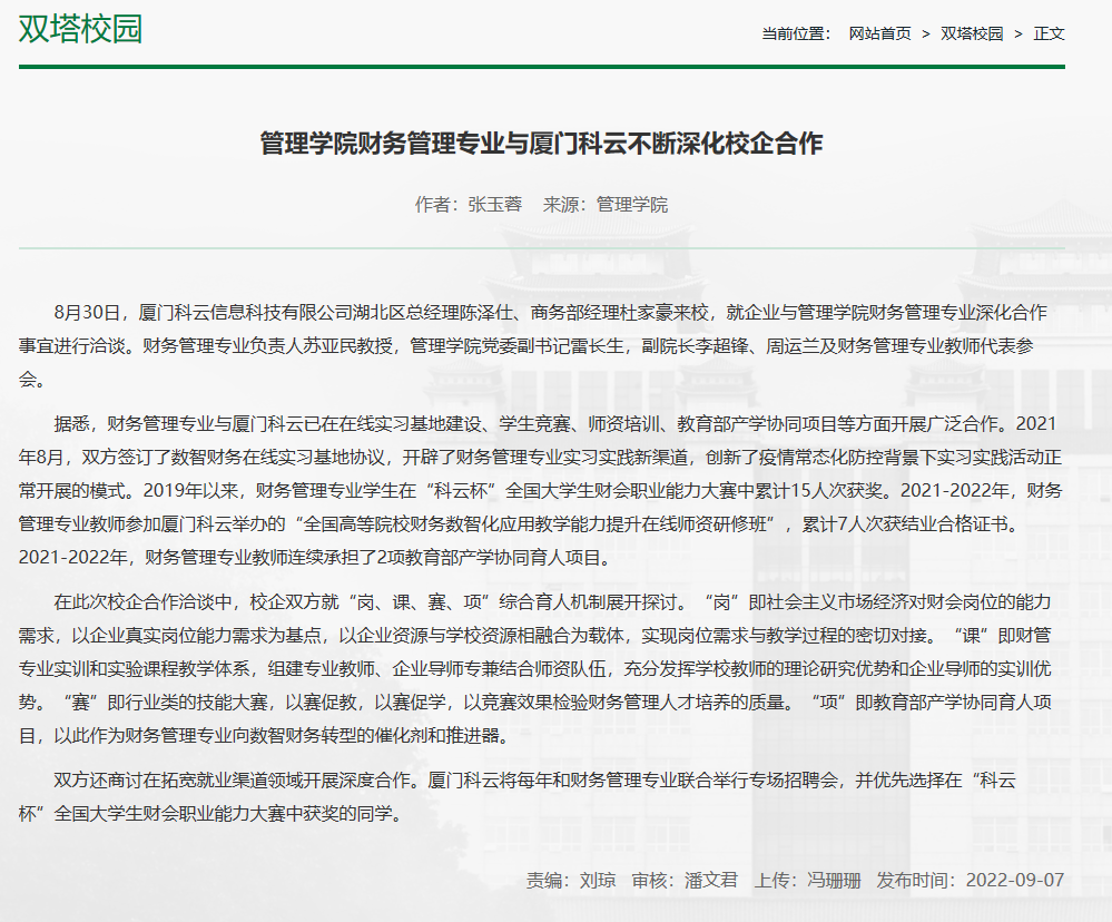 2. 財(cái)務(wù)管理專業(yè)與廈門科云深化校企實(shí)訓(xùn)育人,推動(dòng)專業(yè)高質(zhì)量發(fā)展