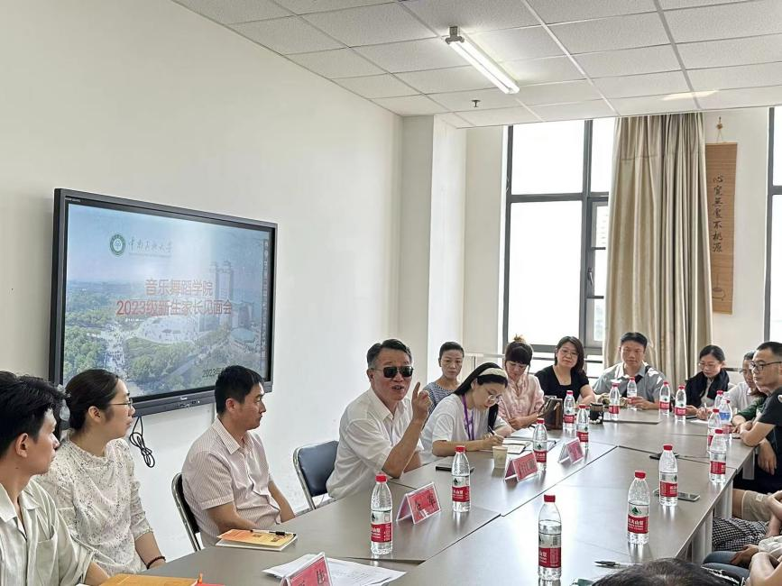 9月8日上午,音樂舞蹈學院舉行了23級新生家長見面會。學校黨委副書記白江源、學院黨委書記金軍、學院副書記雷波、學院副院長賈佳、學院學工辦主任王婷,以及近20位新生家長參加會議。