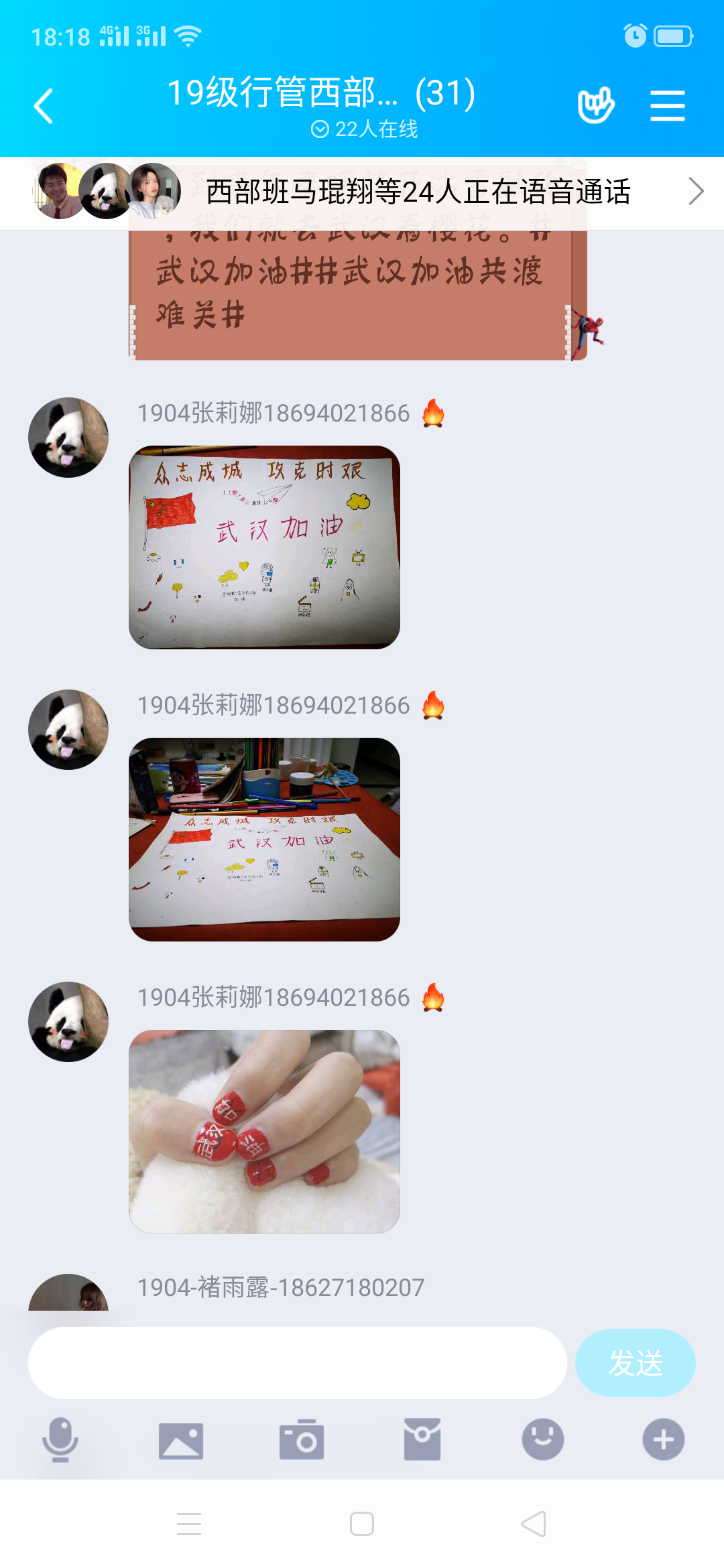 2019級西部實驗班線上班會部分內容。 為了加深認識,來自五湖四海的同學們,用家鄉話介紹民族特色,以家鄉身邊的逆行者為話題,表達了對醫護軍人的贊美,對志愿者的贊許,對國家的贊頌。最后,同學們飽含熱淚在群里發表自己想對武漢說的話及自己制作的畫報,為武漢加油!為中國加油!李茜老師說:“雖然我們是來自不同地區的不同民族,但我們有一個共同的名字叫中華民族。我們這個民族面對困境從來不會退縮。那些逆行者就是民族的脊梁,我們要以他們為榜樣,努力成為國家的棟梁,民族的希望。” 這場班會,時間特殊,人員特殊,方式特殊,但是對祖國的愛和對武漢的情感依然如故。班上同學雖然沒有見過面,但是通過班會將心連在了一起。同心戰“疫”,守望相助,期待春暖花開,武漢相聚。 據了解,在開學的第一周,全校21個學院,已有370個班級、萬余名學生參與了在線主題班會。班會前,同學們積極準備分享;班會過程中,同學們及時關注,積極參與;班會后,同學們樹立了積極抗疫、不懼困難的精神。輔導員老師更是通過話題討論、主題征文、音視頻錄制、居家健身直播等形式,以學習通、智慧樹、騰訊會議等平臺為工具,引導青年學生在危難時刻更要發揚愛國熱情,始終與祖國同命運,與人民共患難,堅定做“守護者”“修行者”“識途者”的信念。 經濟學院1911-1916班在輔導員高無盡老師的組織下,以“經‘疫’事、長一智”為主題,以班級為單位各自開展了主題班會。 1915班班主任李彥軍老師一同參與了以“武漢加油,共渡難關”為題的線上班會。李彥軍老師不但強調疫情防控重要性,也對同學們的網課學習提出建議,并希望同學們能夠居家鍛煉、強身健體;同學們通過視頻、PPT、學習欄目分享等形式,分享了對于疫情的感觸,討論了關于網課學習的意見和注意點,為在家學習的同學們提供了多種學習方法。身在武漢的陳丹妮同學通過圖片展示身邊涌現出來的先進典型、英雄人物和感人事跡,讓大家近距離感受武漢人民眾志成城。 通過主題班會,同學們線上聯絡感情彼此分享各自感觸的同時,大家對各地共渡難關更增添了信心,希望武漢早日渡過疫情難關,我們早日線下重逢武漢!