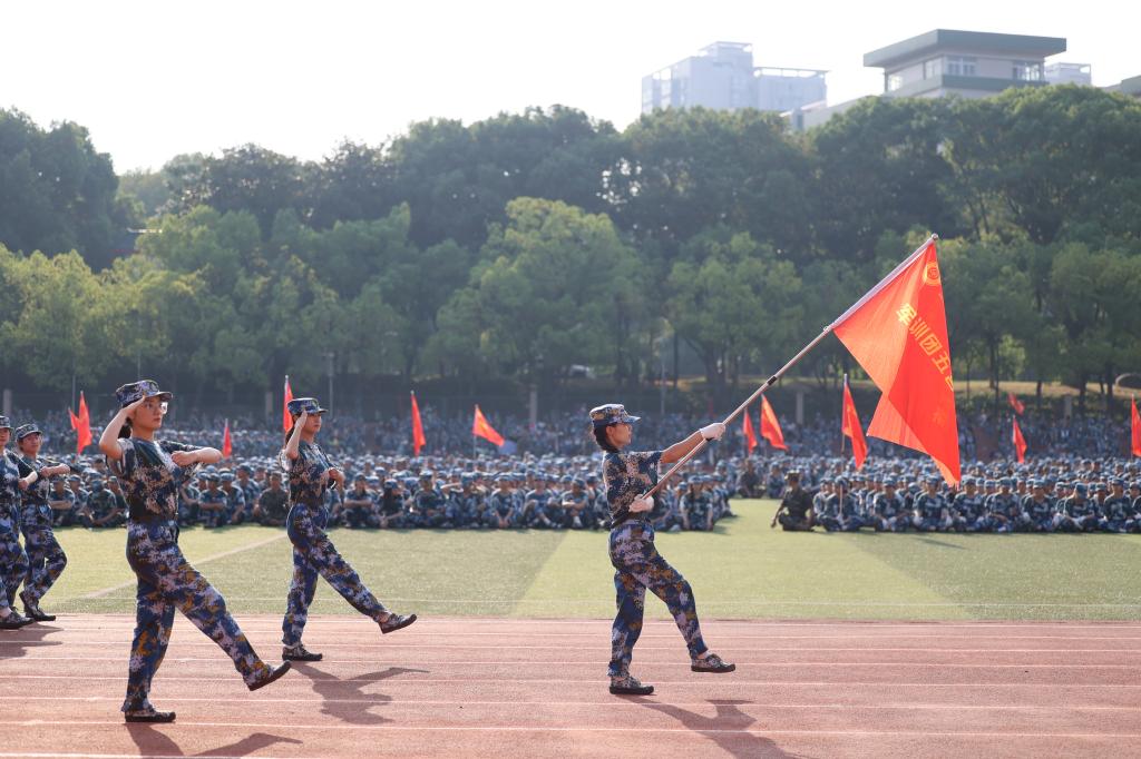 發言完畢后,校長李金林向軍訓團贈送軍訓紀念錦旗。大會在全體起立奏唱校歌中圓滿結束。
