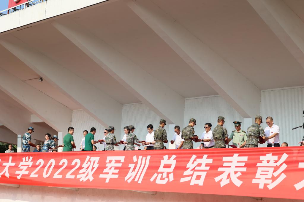 (學通社9月8日電,記者:鐘汶恒)9月8日上午,學校在南湖操場舉行了中南民族大學2022級學生軍訓表彰暨學年總結大會。出席大會的領導和嘉賓包括:中南民族大學全體校領導、武警湖北省某支隊黨委委員、中校副團職大隊長羅勝根,還有學校相關職能部門及各學院負責同志。大會由學校黨委副書記、副校長宋發軍主持。