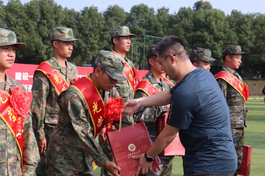 最后,楊濤部長代表學校向應征入伍的大學生贈送了紀念品和誠摯的祝福,全體人員合影留念。