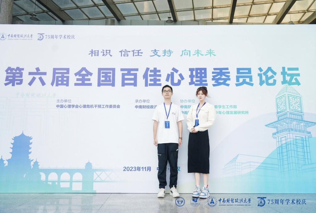 11月1日至3日,第十八屆全國高校心理委員工作研討會暨朋輩輔導論壇于中南財經政法大學順利召開。本次論壇由中國心理學會心理危機干預工作委員會、全國高校心理委員工作協(xié)作組主辦,中南財經政法大學承辦。本次會議有來自北京大學、中國科學院大學、天津大學等260所高校的 848名心理健康教育工作者和心理委員參會。我校馬克思主義學院2022級研究生祝宇豪榮獲“全國百佳心理委員”稱號,管理學院2021級本科生徐子鑫榮獲“全國百佳心理委員提名獎”。