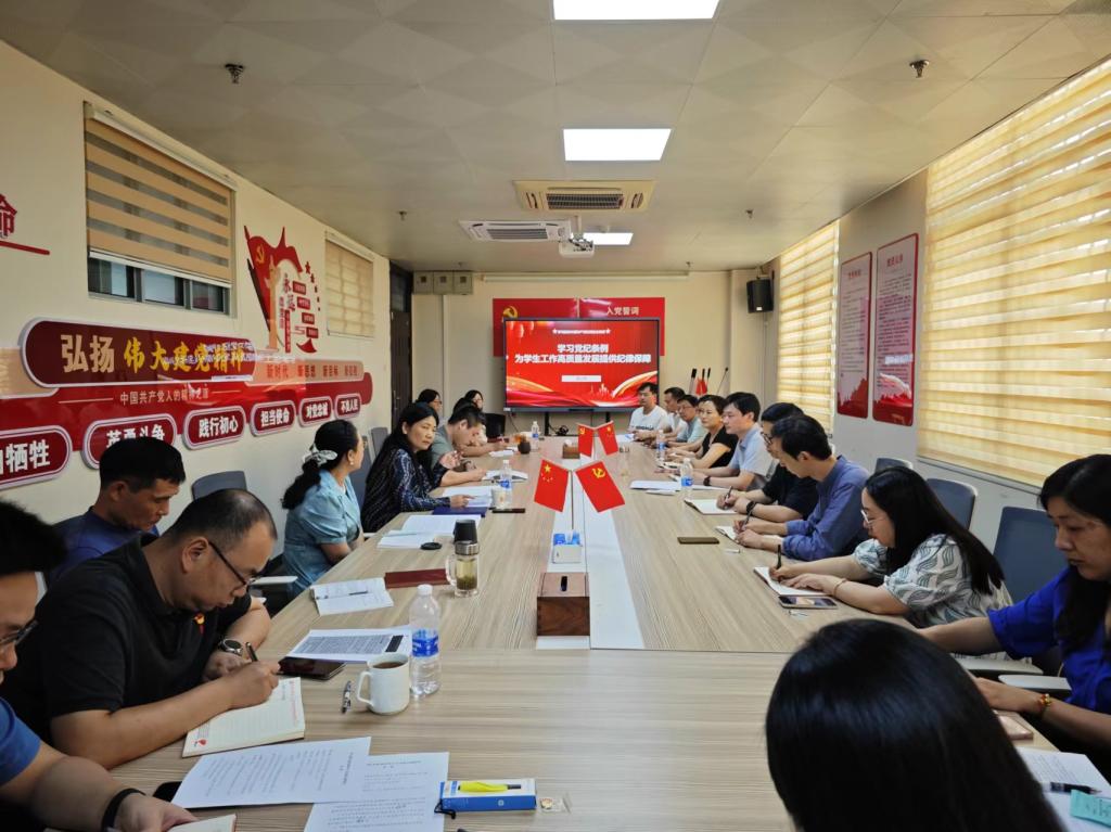 李紅燕對學工部全體黨員干部提出三點要求:一要在講政治上聚神,深入學習文件;二要在查問題上聚焦,認真抓好落實;三要在促落實上聚力,突出表率作用。她要求學工部黨支部要堅決貫徹堅定不移全面從嚴治黨戰略部署,聚焦鑄牢中華民族共同體意識主線,落實黨風廉政建設主體責任,增強“四個意識”、堅定“四個自信”、做到“兩個維護”,把學習、貫徹《中國共產黨紀律處分條例》作為當前和今后一個時期的一項重要任務,在學生教育、管理、獎懲等關鍵環節,堅持按規則和程序辦事,讓權力在陽光下運行,切實增強開展黨紀學習教育的責任感和主動性,為學生工作高質量發展提供強有力的紀律保障。