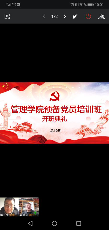 2020年3月14日上午10點(diǎn),疫情下,管理學(xué)院2020年第十期預(yù)備黨員培訓(xùn)班開(kāi)班典禮在線上順利舉行。出席本次開(kāi)班式的有管理學(xué)院黨委書(shū)記、分黨校校長(zhǎng)蘇盛光老師,本次培訓(xùn)班班主任、2017級(jí)輔導(dǎo)員王宇娟老師,學(xué)院各年級(jí)90余名預(yù)備黨員培訓(xùn)班學(xué)員,會(huì)議由學(xué)院黨委副書(shū)記雷長(zhǎng)生同志主持。