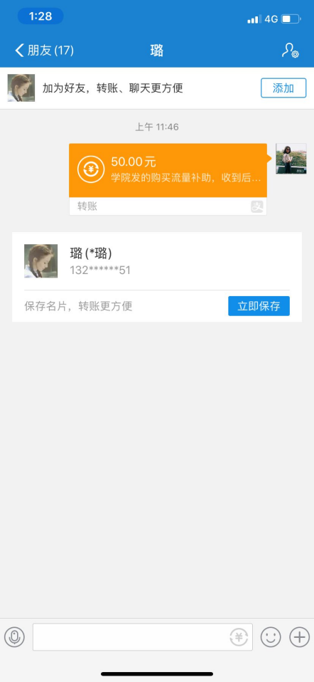 學院發放流量補助的過程。 學院通過線上通知,自主申請,了解實情等方式,在全院范圍內一共確定了33名補助對象,并通過各年級輔導員以支付寶、微信等形式給予這33名同學每人50元的定向流量補貼。