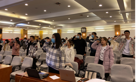 2020級新成員宣誓成為志愿者 首先,學院黨委副書記李明立致詞,他在致辭中代表學院衷心祝賀我院青協成立十周年,向一直以來關心支持青協工作的領導、老師、同學們表示衷心的感謝!生醫青協自2010年成立以來,秉承“奉獻,友愛,互助,進步”的志愿者精神,積極參與助教扶貧、社區服務、環境保護,幫助孤寡兒童等大型公益活動,取得了很好的成績,這些成績受到了廣師生的好評,得到了學院的充分認可。他從完善和改進工作制度,不斷提升志愿服務能力水平;立足學院,面向社會,不斷提升志愿服務影響力;積極參與志愿服務,實現服務他人與自身的成長三個方面對青協工作的提出了建議。并希望青協繼續保持優良傳統、務實的作風,在新的起點上做出更優的成績。