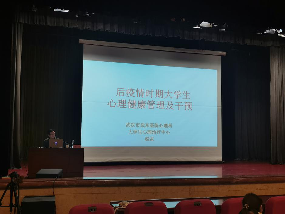 為幫助大學生調整后疫情時期情緒狀態,增強心理意識,提高心理品質,12月3日美術學院于學術會堂舉辦由武漢市武東醫院心理科主任趙孟主講的《后疫情時期大學生心理健康管理及干預》的講座,美術學院黨委副書記張雯君主持,各年級輔導員老師、2020級班主任助理、部分2020級新生及高年級班委參會。