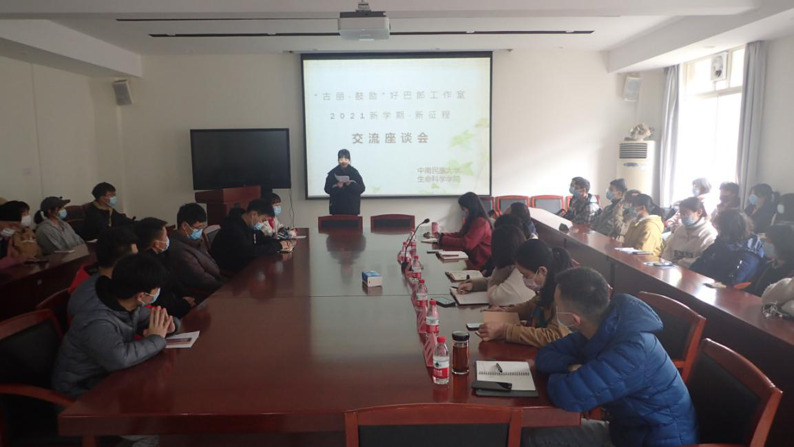3月7日下午,生命科學學院在8-C-206會議室開展了好巴郎工作室2021“新學期·新征程”交流座談會。座談會旨在了解同學們在學習生活上的問題和建議,及時掌握學生思想動態,促進學校和學院教育教學工作發展。各年級和班級學生代表,學院黨委副書記楊征,教師代表胡曉敏、陳雁、張麗、夏爽,輔導員阿依佐合熱等參加了座談會。