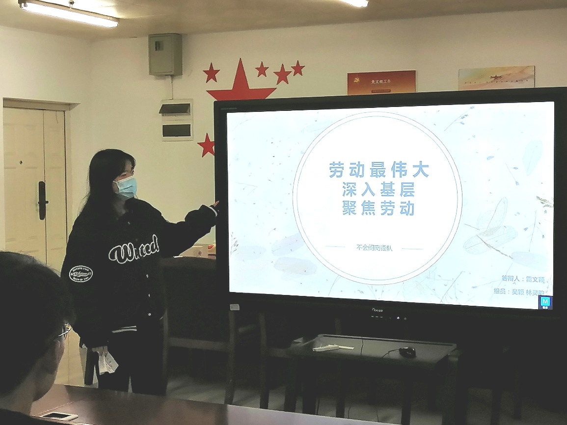 其中“不會閩南語”隊的答辯人雷文穎以視頻的形式讓我們走近建筑工人的日常,感受他們生活的艱辛;而“為愛遠航”隊則聯(lián)系到云南邵通地方資助有關部門,為高三學子進行了資助宣傳,激勵同學們潛心學習,有國家作為永遠的堅實后盾。