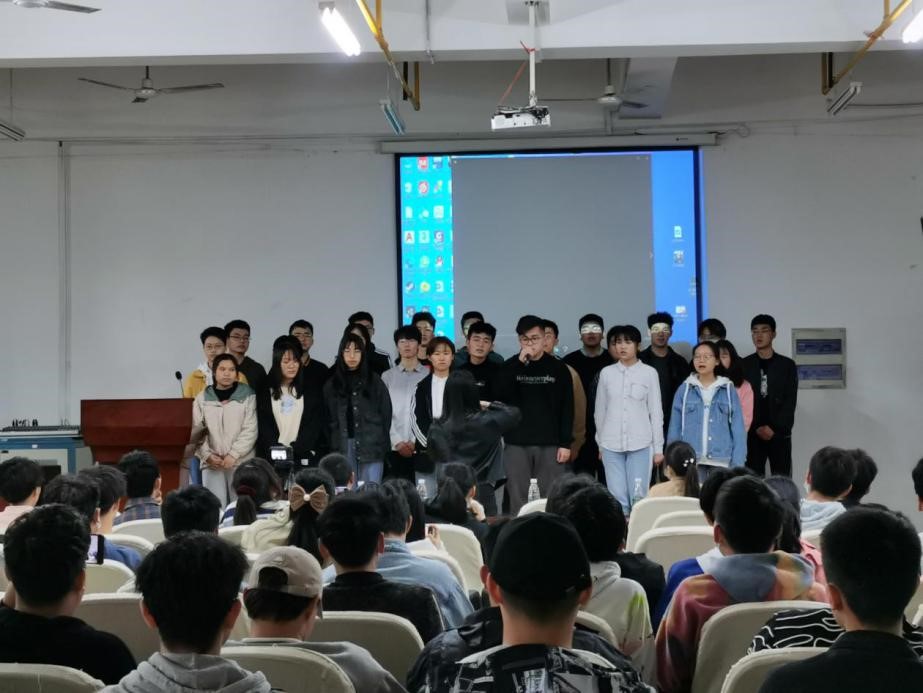 隨后,三個班級結(jié)合專業(yè)特長,利用編程技能設計并現(xiàn)場演示了各具特色的班徽,寓意蓬勃向上、頑強拼搏、團結(jié)進步,并通過《相親相愛》大合唱,表達了大家對學校、對黨和國家的熱愛。