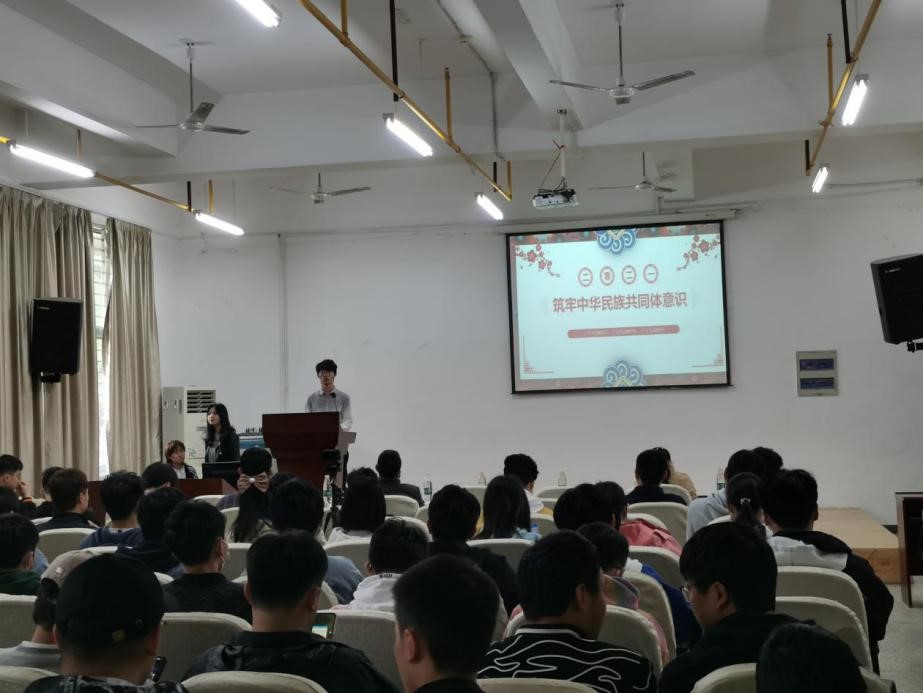會議開始,2009班班長盛康以“鑄牢中華民族共同體意識”為主題,進行了精彩的演講。我國是一個多民族的國家,56個民族在長期歷史發(fā)展中形成了政治上團結(jié)統(tǒng)一,文化上兼容并蓄,經(jīng)濟上相互依存,情感上相互親近,你中有我、我中有你、誰也離不開誰的民族共同體。在未來的征程中,實現(xiàn)中華民族偉大復興需要各民族共同團結(jié)奮斗、共同繁榮發(fā)展,鑄牢中華民族共同體意識,我輩義不容辭!