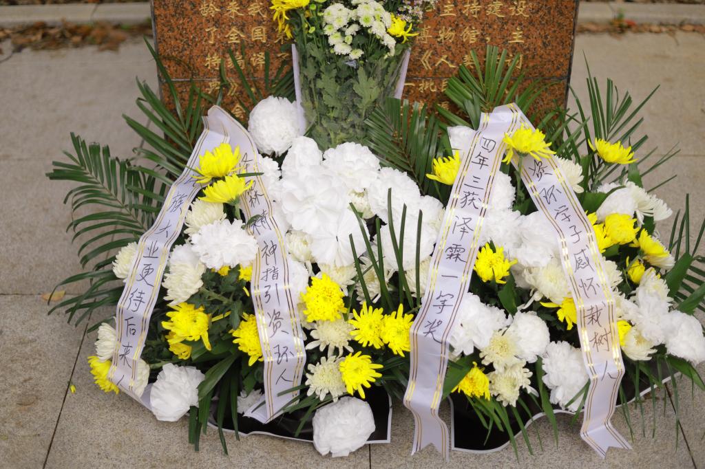 資源與環(huán)境學院學子獻花。 文曉軒 攝