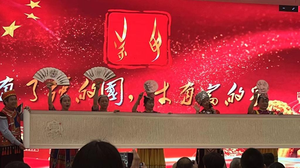 會議在湖北省館員的歌舞表演《國家》中拉開序幕,她們以深情的演唱配合手語表演以及女書文化展示,表達對國家的熱愛,展現圖書館豐富的文化內涵和民族文化的濃厚韻味。校黨委常委、紀委書記韓葉盛代表學校為本次讀書節致開幕詞,他強調要著力推進書香校園建設,號召青年學生多讀書、善讀書、讀好書,閱讀經典、讀懂文明,通古今之變、識天下興衰、兼中外之學,成長為“復興棟梁、強國先鋒”。隨后,韓葉盛與圖書館館長饒映雪共同揭牌,進行大型歷史文獻叢書《復興文庫》入藏儀式。教師代表劉吉開教授與學生代表韓穎莉、楊雨默依次發言。
