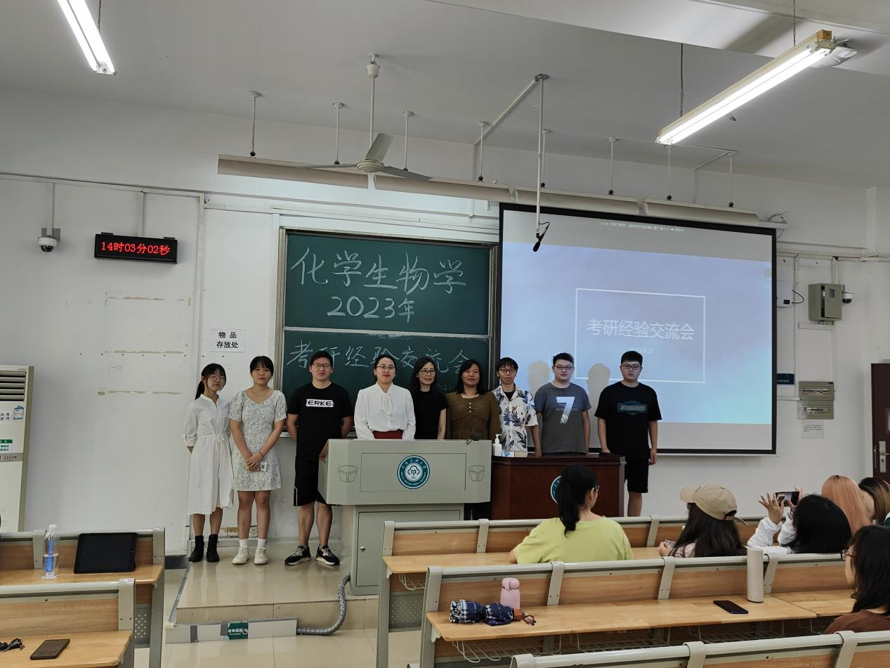 為使學生全面掌握考研信息、選擇專業方向、合理制定考研復習計劃,4月21日,藥學院化學生物學系在11210教室舉辦考研經驗交流會?;瘜W生物學系班導師徐婧、劉慶培老師及2020級、2021級化學生物學系本科生參加。會議由化學生物學系主任黃蓉老師主持。