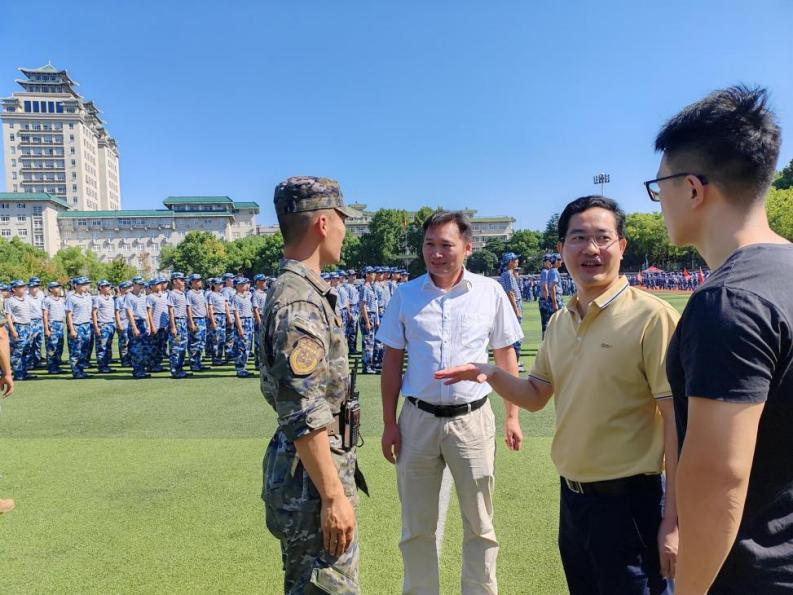 烈日下,南湖操場上,化學與材料科學學院2022級學子軍訓正如火如荼地進行著。9月1日上午,學院黨委書記祁帆、黨委副書記錢紅亮前往訓練場地,看望軍訓學生。