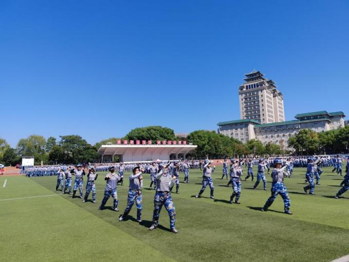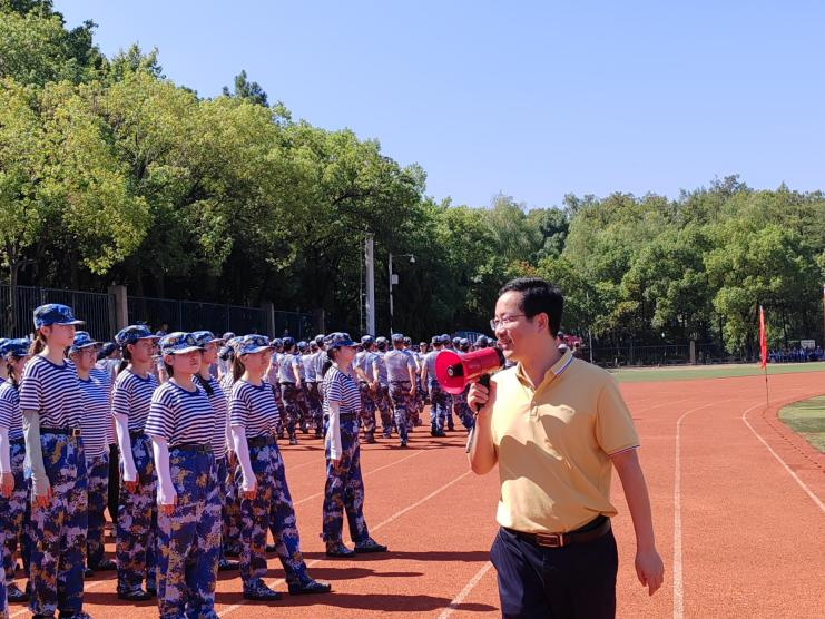化學與材料科學學院2022級共有382名新生參加軍訓,編入軍訓二營3、4、8、9軍訓連。學院學生工作辦主任張雪花,2022級輔導員葉烜瑞、王奎,2023級輔導員季維,一同前往。