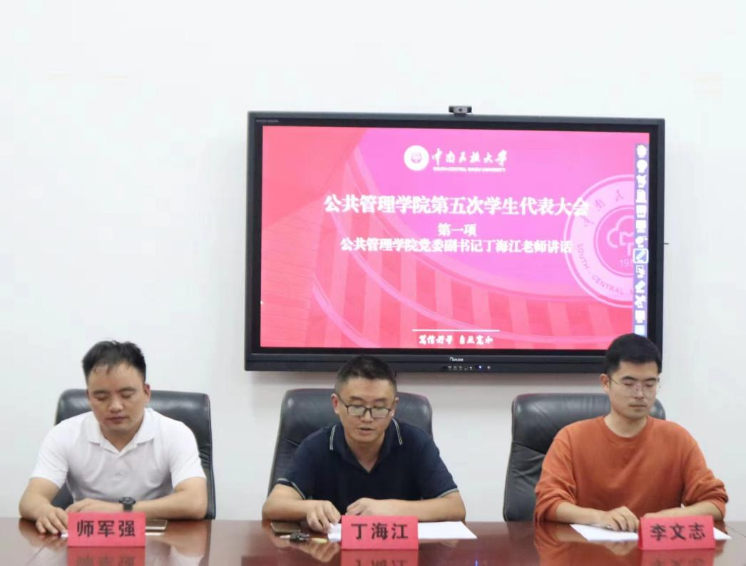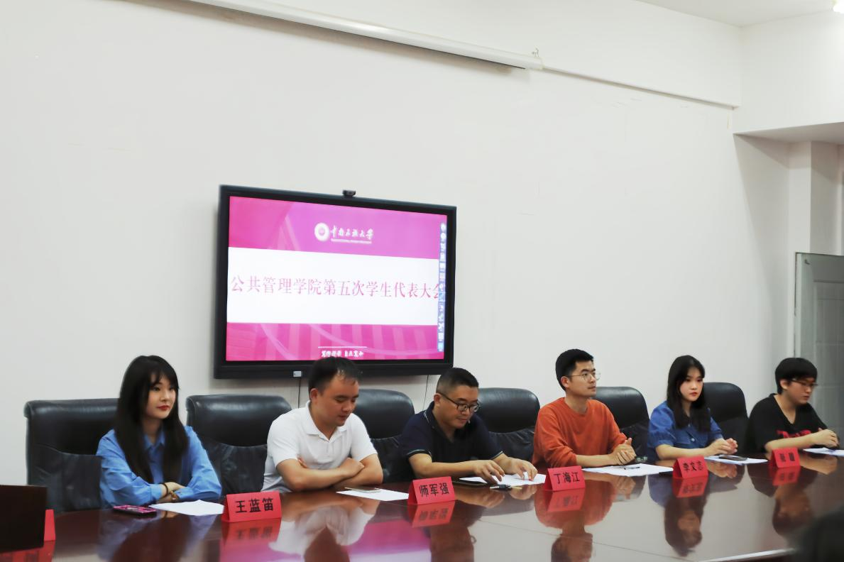 2023年9月13日,中南民族大學公共管理學院第五次學生代表大會在15棟818教室召開。黨委副書記丁海江老師、團委書記師軍強老師、團委副書記李文志老師出席會議,第十五屆學生會主席團成員張璇同學、王藍笛同學、鐘宏洋同學以及全體學生代表參會。