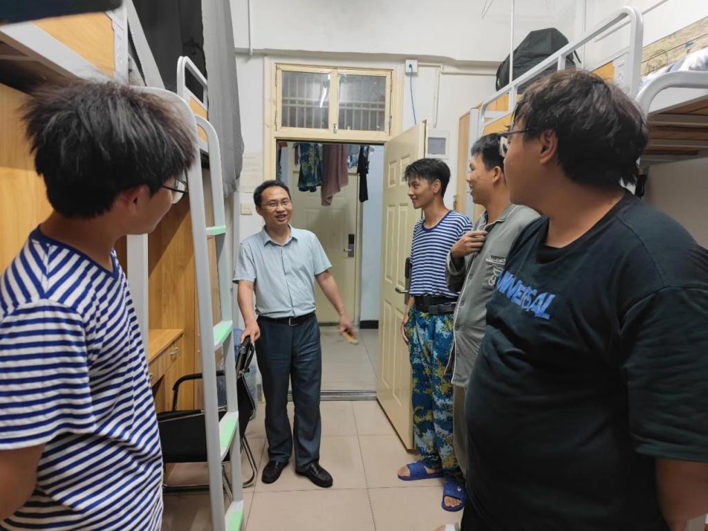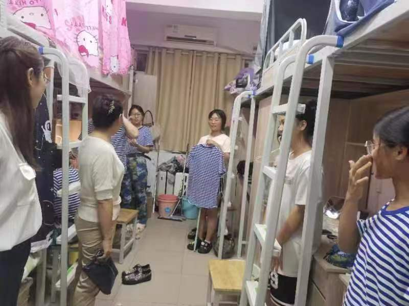 老師們在與同學們交流的同時也檢查了每間寢室的衛生和安全狀況,對電器的使用是否符合規范特別予以關注,并耐心地對存有一定安全隱患的寢室進行了現場糾正與教育。