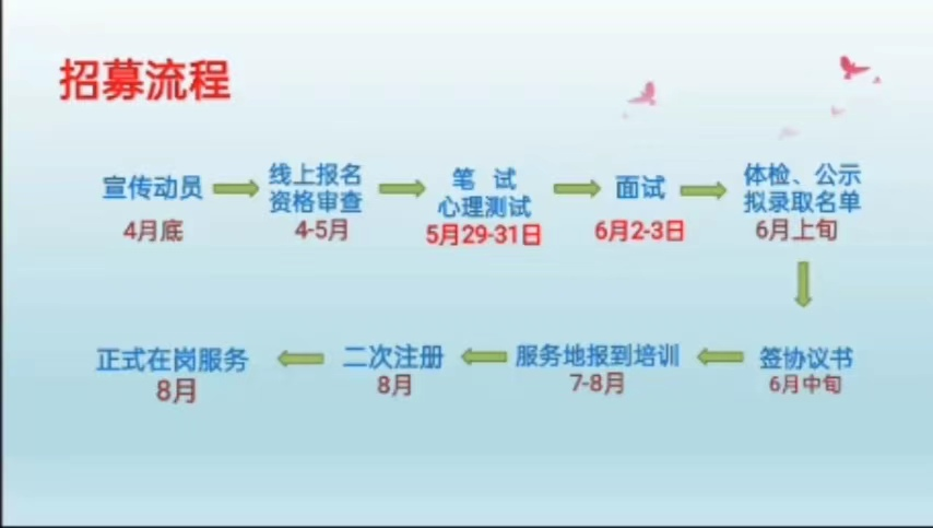 圖為西部計劃報考招募流程圖。 李曼瑤 攝