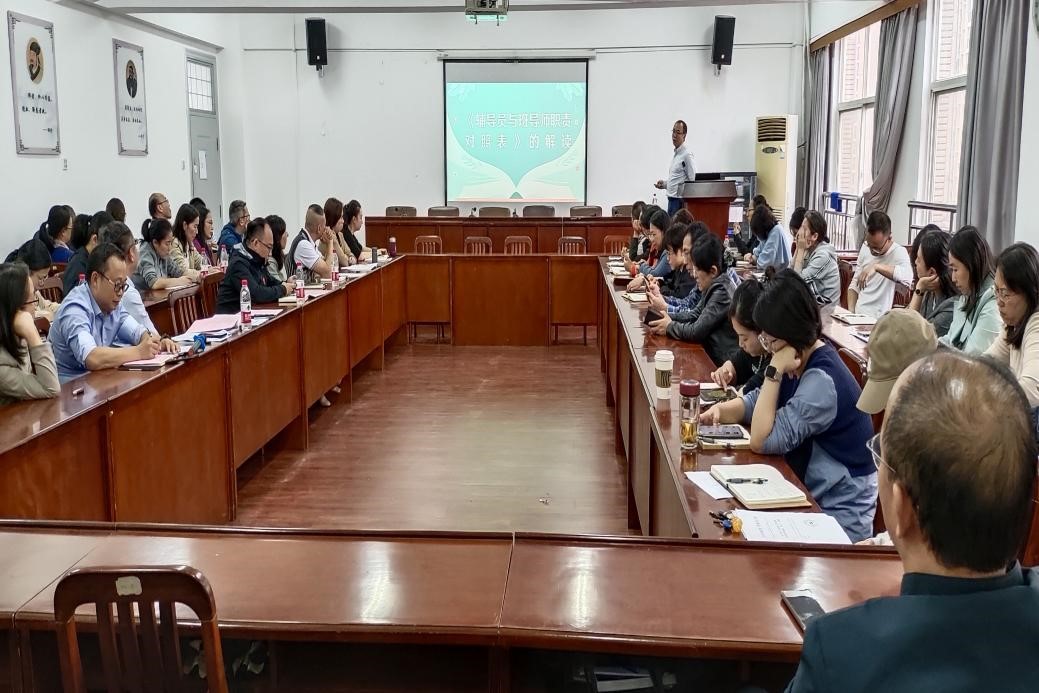 方明應邀為學院班導師作專題輔導,他從班導師相關文件制定背景、新版《中南民族大學班導師隊伍建設實施辦法》的主要內容和修訂的六個方面、輔導員與班導師的具體職責要求三個方面重點解讀了《中南民族大學班導師隊伍建設實施辦法(修訂)》和《中南民族大學班導師、輔導員工作職責》。方明強調,班導師應深入了解學生的基本情況,密切聯系學生,隨時掌握學生的學習與生活動態,及時為學生解決問題,做好學生成長路上的引路人,助力學生成長成才。