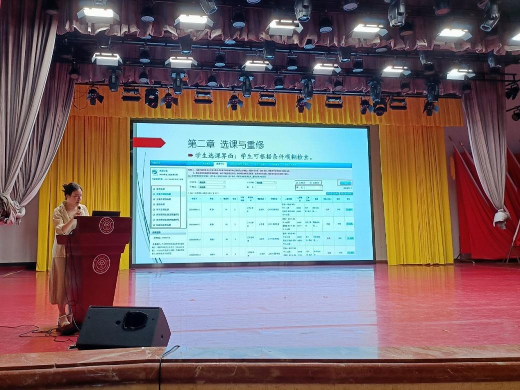 會議伊始,教學(xué)秘書黎瀟老師詳細講解了教學(xué)運行管理方面的細則,包括“學(xué)分制”“選課與重修”“輔修雙學(xué)位”“教務(wù)系統(tǒng)”以及“考風(fēng)考紀”等新生重點關(guān)注的內(nèi)容,解決了新生對于學(xué)習(xí)課程的選擇和教學(xué)制度等方面的困惑。