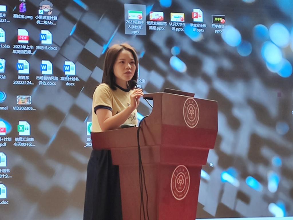 在安全教育方面,王瑩瑩老師通過一系列案例分析,結(jié)合時下高熱度電影《孤注一擲》給新生開展了一場生動的安全教育課,告誡同學(xué)們一定要注意甄別網(wǎng)絡(luò)上的各種信息,切實保障人身財產(chǎn)安全。