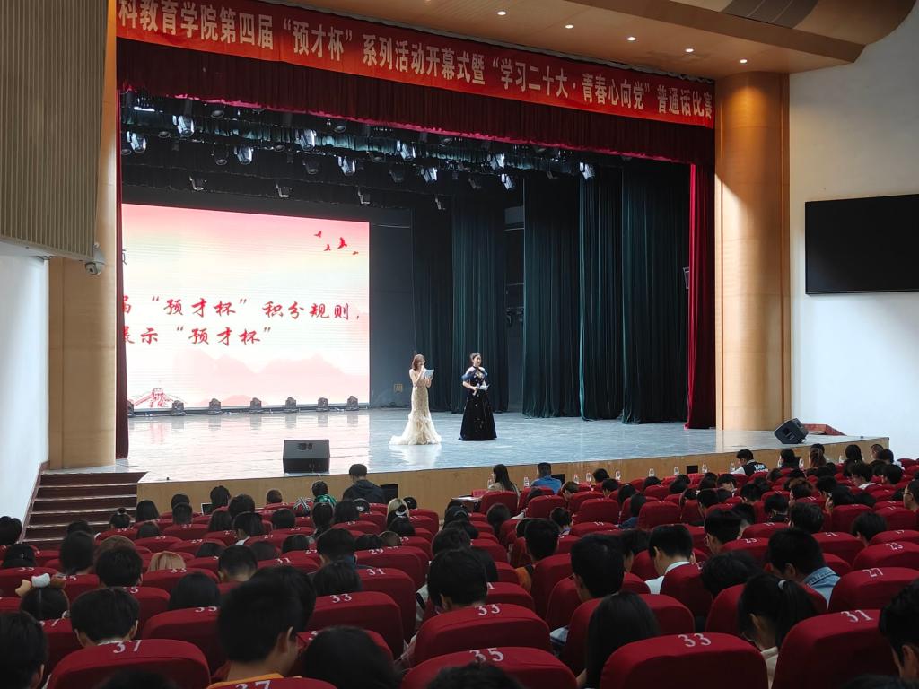 2023年10月20日晚,預(yù)科教育學(xué)院第四屆“預(yù)才杯”開幕式暨普通話演講比賽決賽于大禮堂隆重舉行。預(yù)科教育學(xué)院黨總支書記陳昌華、副書記李忠賢,班導(dǎo)師馬潔、楊柳、張媛、墻峻峰,學(xué)工辦主任王曉微,專職輔導(dǎo)員阮嬌嬌,評(píng)委嘉賓張俊瀟、楊再杞、蘇巴熱、石佳雯、石佳琪及預(yù)科教育學(xué)院2023級(jí)全體學(xué)生參加活動(dòng)。王嘉玲、潘晨希擔(dān)任主持人。