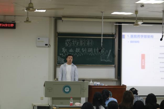 柯磊就醫(yī)院藥師就業(yè)方向進(jìn)行經(jīng)驗(yàn)分享,詳細(xì)講解了醫(yī)院藥學(xué)部架構(gòu)和藥師的主要工作;圍繞本科生未來發(fā)展就業(yè)問題,分享了自身在藥學(xué)院學(xué)習(xí)過程中積累的豐富經(jīng)驗(yàn),強(qiáng)調(diào)專業(yè)學(xué)習(xí)與培養(yǎng)科研能力的重要性,鼓勵(lì)學(xué)弟學(xué)妹們繼續(xù)深造,根據(jù)個(gè)人實(shí)際情況制定切實(shí)可行的發(fā)展規(guī)劃。
