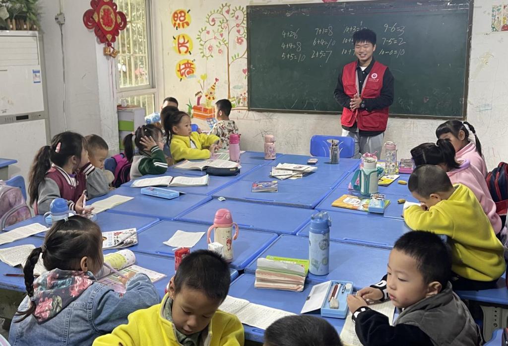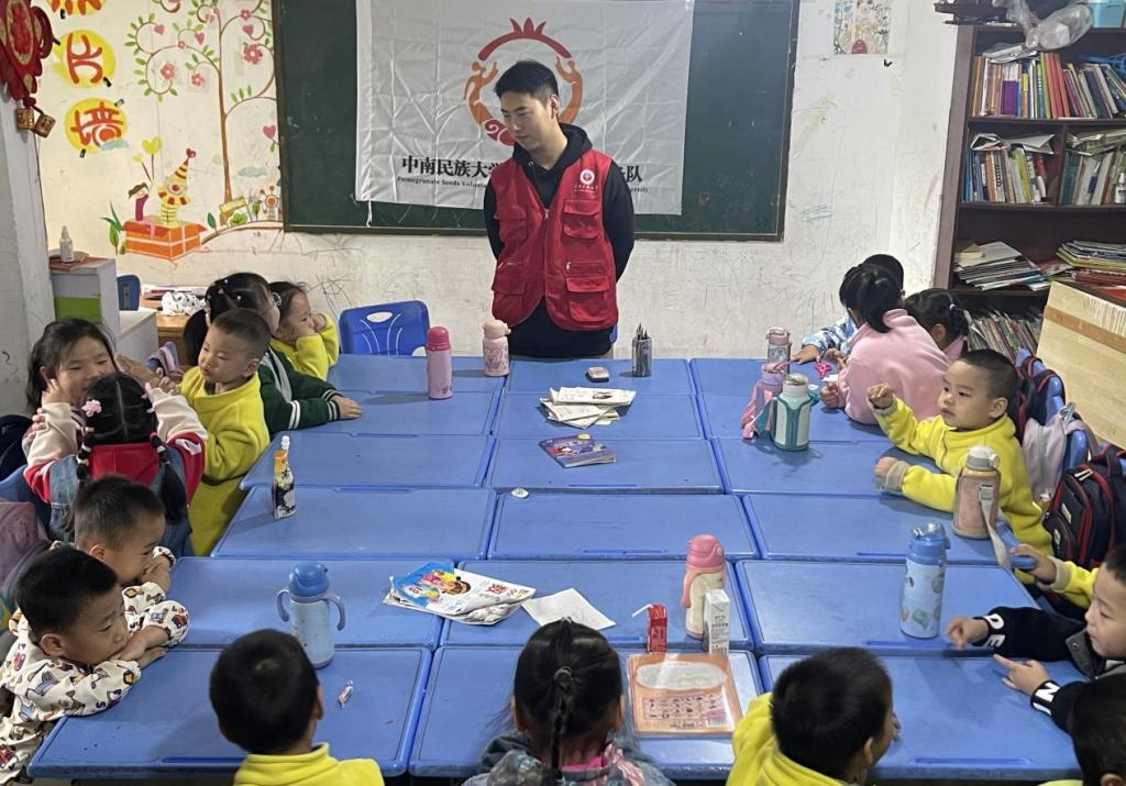 圖為志愿者向小朋友們教學節氣歌。 公共管理學院 供圖