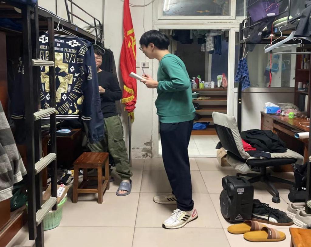 為深入了解學生宿舍情況、加強同學們的宿舍安全意識,由年級團總支牽頭帶領21級入黨積極分子分組對21級男女生寢室衛生文明方面進行安全檢查。此次查寢小組分為兩隊進行,男生組由張璟康同學為小組長牽頭負責,女生組由郭熒熒同學帶領進行查寢工作。