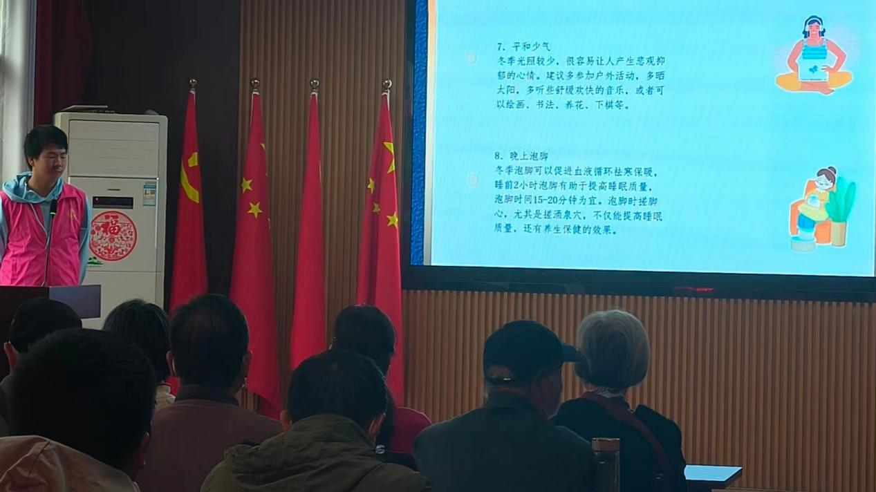 圖為志愿者介紹立冬養生方法。 公共管理學院 供圖