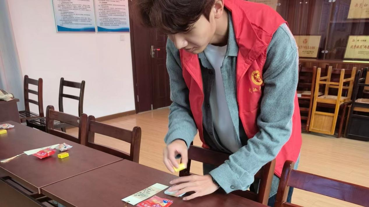 志愿者們早早地到了現場,拿出了準備好的小零食和自制書畫書簽,開始布置會場。精美的書簽和可口的小零食擺上桌,為活動增添了一份溫暖的氛圍,似乎它們也迫不及待地想要開始此次活動。