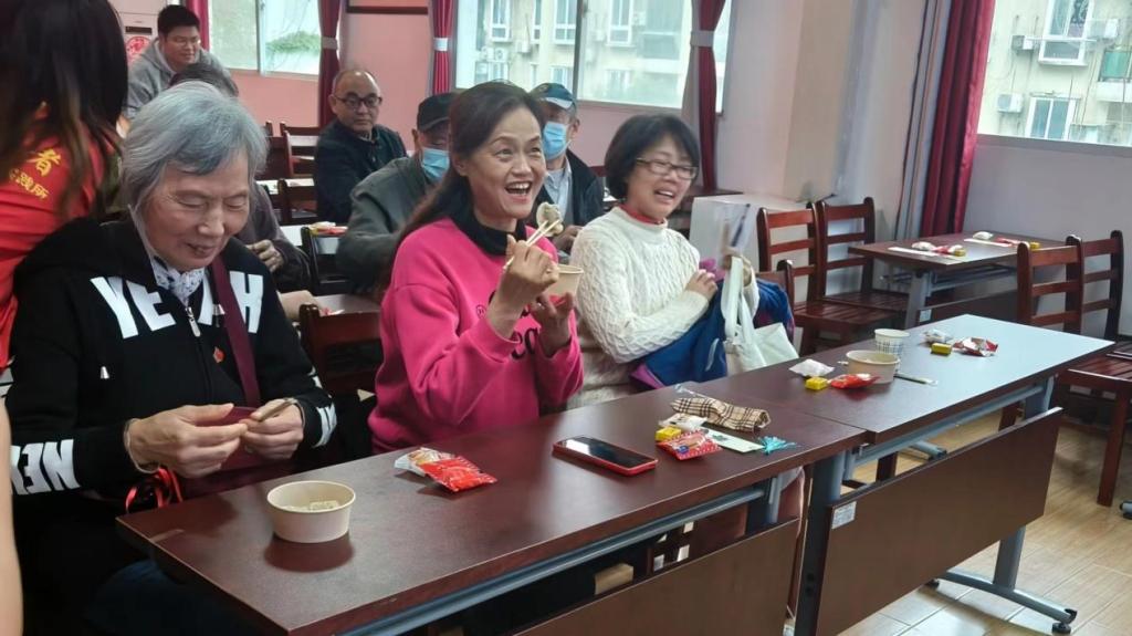 圖為社區老人吃餃子。 公共管理學院 供圖