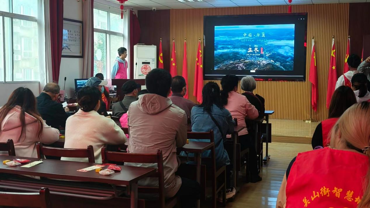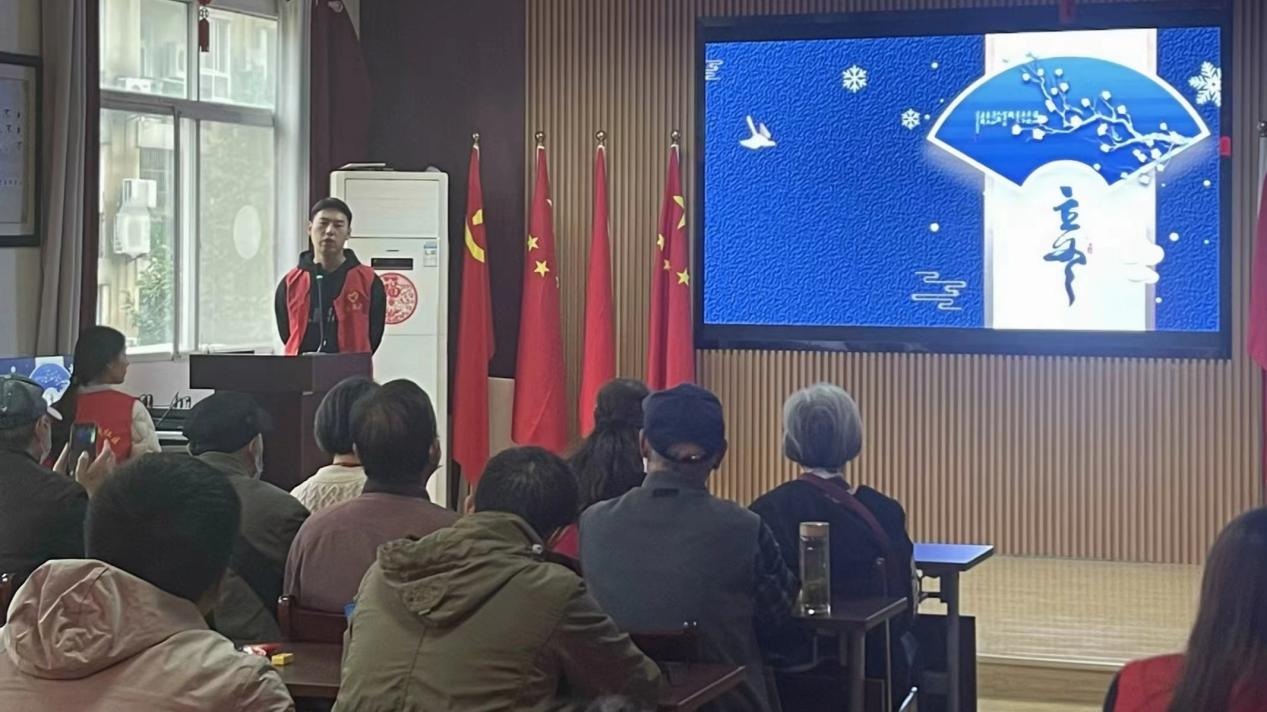圖為志愿者帶領大家觀看立冬小視頻。 公共管理學院 供圖