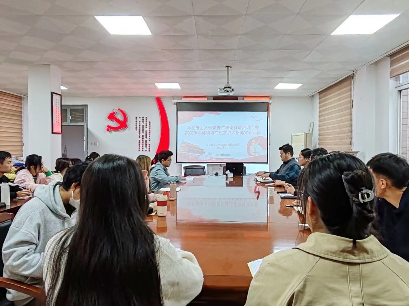 11月22日下午,馬克思主義學院青年理論宣講培訓暨武漢革命博物館紅色宣講人招募宣介會在501會議室舉行。副院長滕帥出席會議,青年理論宣講團成員和青年志愿者協會負責人參加會議。會議由黃政馀主持。