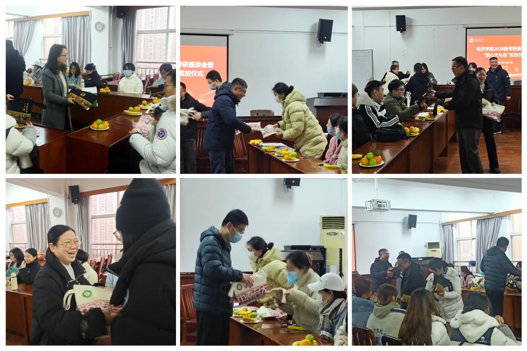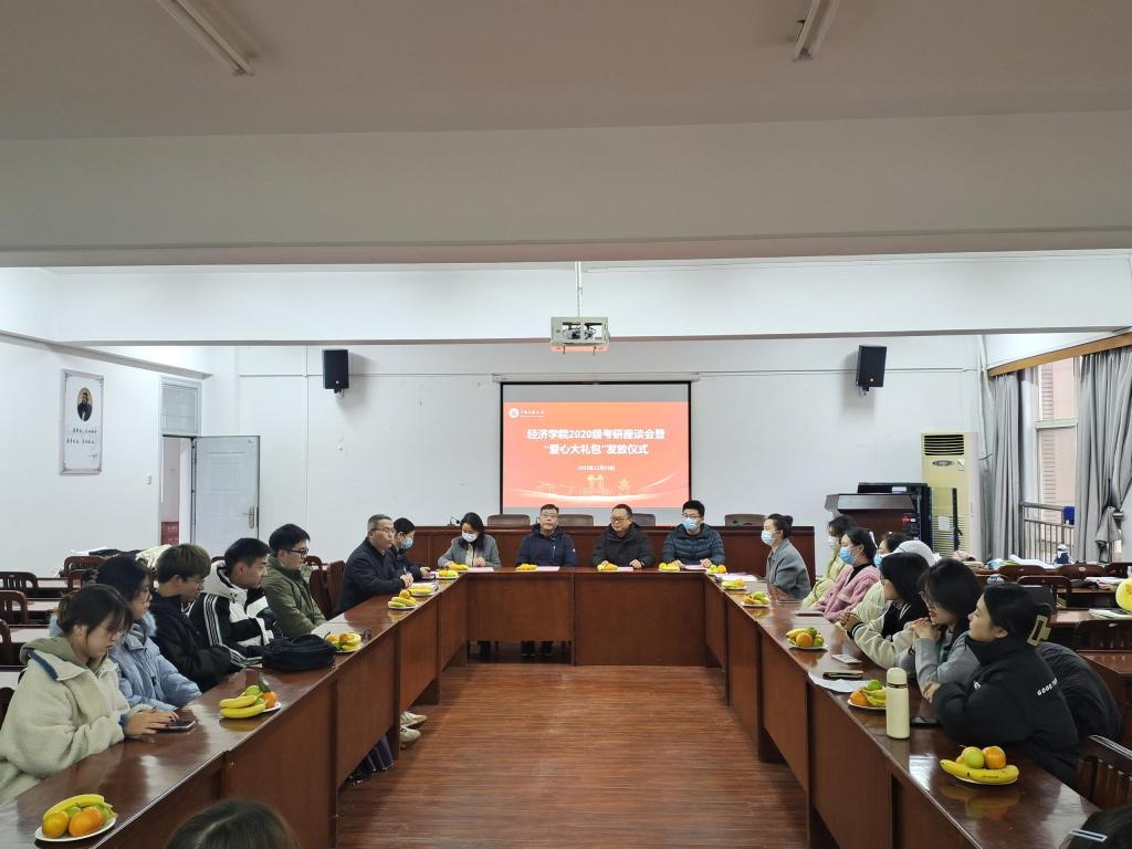 為進一步加強對考研學子的關心慰問,鼓勵他們積極備考、樂觀應考,12月14日上午,經濟學院在學院會議室為考研學生代表集體發放“愛心大禮包”。學院領導班子成員、教研室主任代表、畢業班輔導員、班導師和考研學生代表參加。