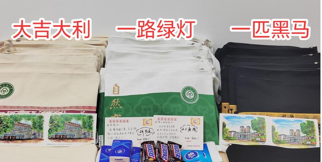 參會領導、老師為學生代表發放了“愛心大禮包”。“愛心大禮包”分為“一路綠燈”“大吉大利”“一匹黑馬”三個類別,每類均包括考試文具套裝、紙巾、濕巾、士力架和由學院師生手寫的明信片,座談會現場洋溢著溫暖的笑容和愉悅的笑聲。