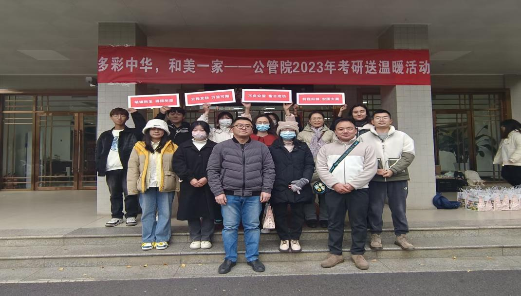 為表達對考研學子的慰問與鼓勵,公共管理學院于11月30日在南書苑自習室門口舉行了“多彩中華,和美一家”考研送溫暖活動,活動由公共管理學院團委心理健康工作部負責組織。