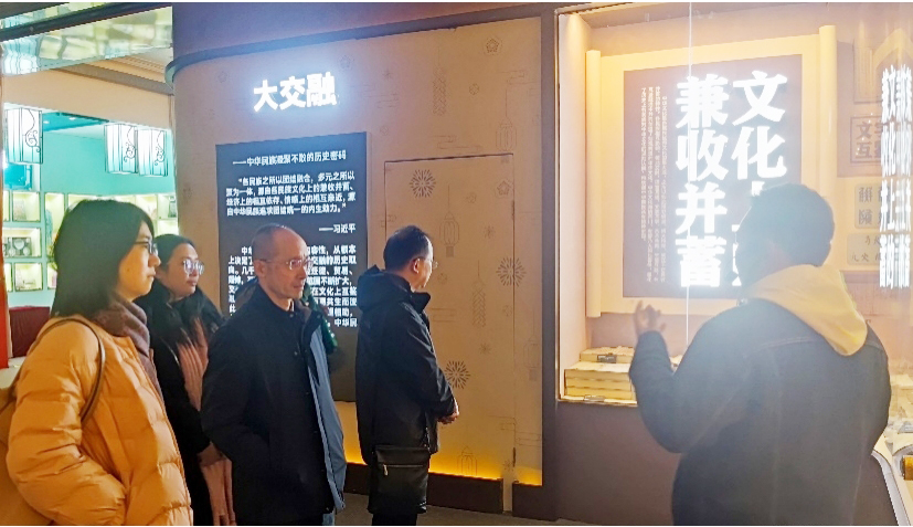 參觀中,外語學院一行首先前往民族文化宮,依次參觀了“大一統——中華文明延續不斷的歷史基因”“大交融——中華民族凝聚不散的歷史密碼”“大團結——中華民族走向復興的根本保證”3個單元,從歷史、文化、經濟等多個維度,深入了解波瀾壯闊的中華民族形成發展歷史,體驗博大精深的中華優秀傳統文化,深刻感悟中國共產黨百年民族工作偉大成就。隨后,一行人參觀了“中華一脈 同心筑夢——中國共產黨民族工作光輝歷程和偉大成就主題展”與“蒙藏學校舊址專題展”,通過“展覽+體驗”的方式深入了解中國共產黨團結各民族的光輝成就和蒙藏學校在革命歲月中發揮的重要作用,通過體驗各民族優秀傳統文化感悟各民族文化“美美與共”及鑄牢中華民族共同體意識的豐富內涵。