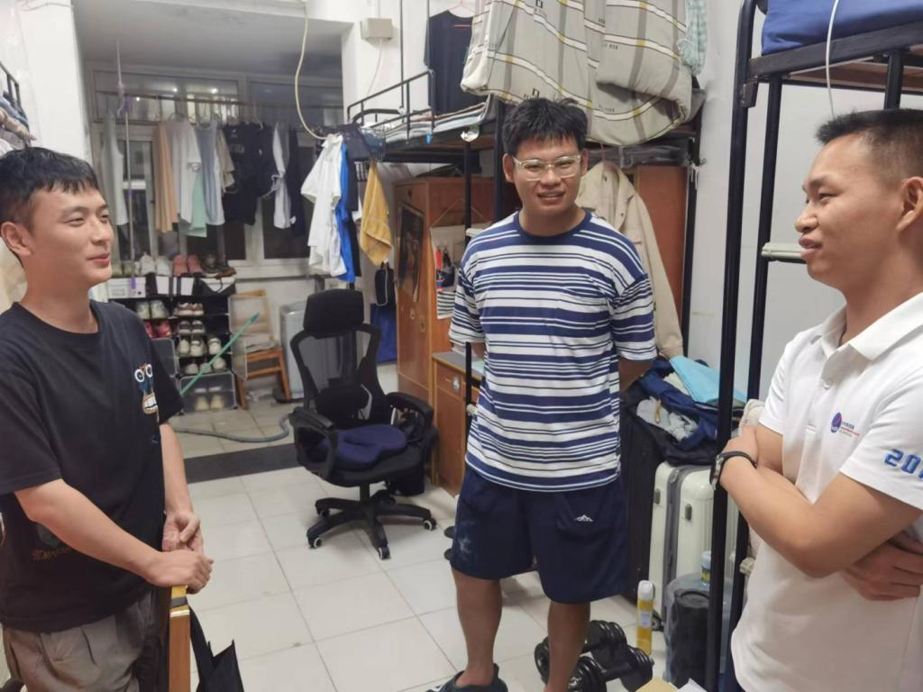 8月28日,為了解電子信息工程學院新學期返校學生的宿舍生活和學習情況,激發學生新學期學習的積極性和主動性,電信學院的班導師們在開學第一天晚上走訪學生宿舍,關注返校情況,清點學生人數,檢查宿舍衛生。