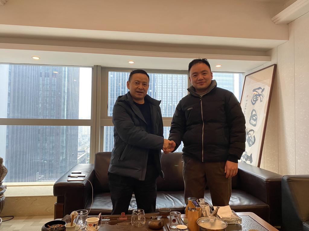 圖為師軍強老師與走訪企業負責人合影。 余迅 攝