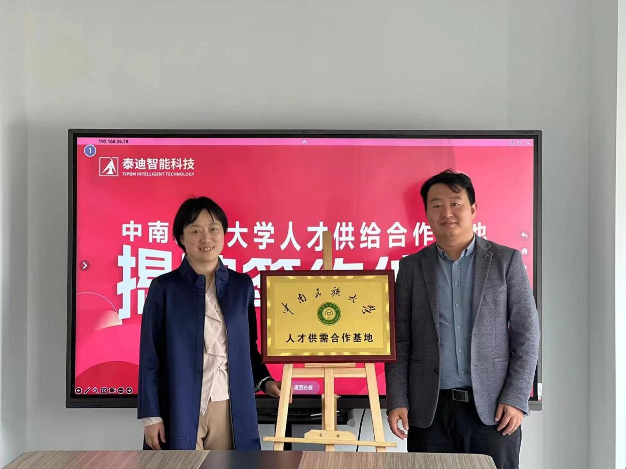 黨委副書記宋榮與廣州泰迪公司副總經理施興為人才供需合作基地揭牌。